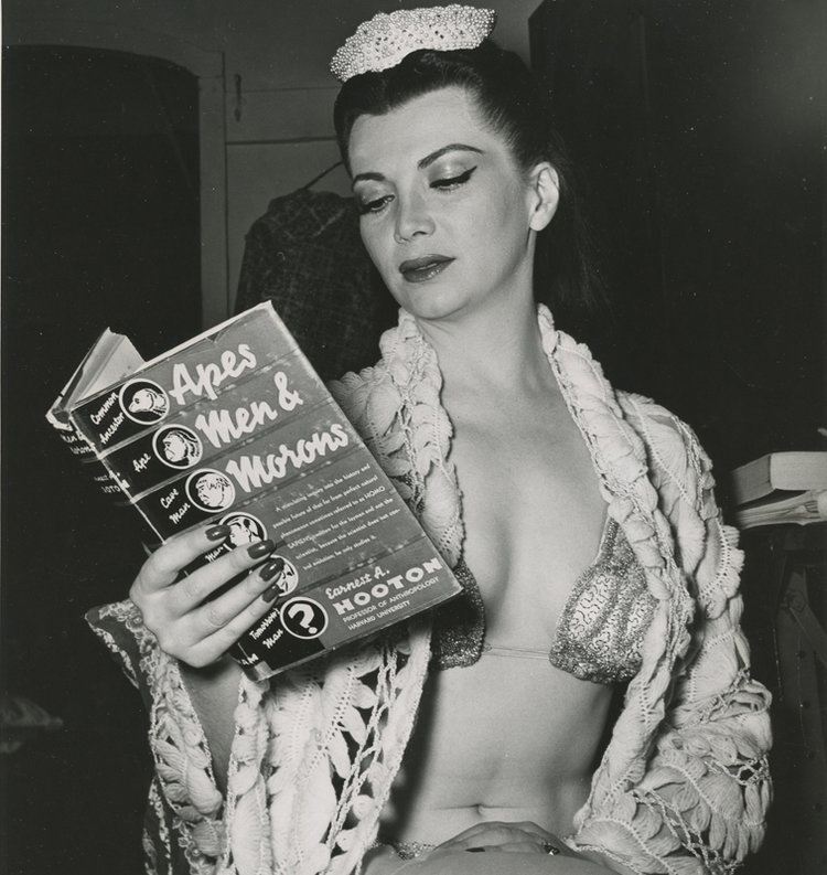 Apes, Men & Morons (Stripper Reading a Book), c. 1950, Weegee
